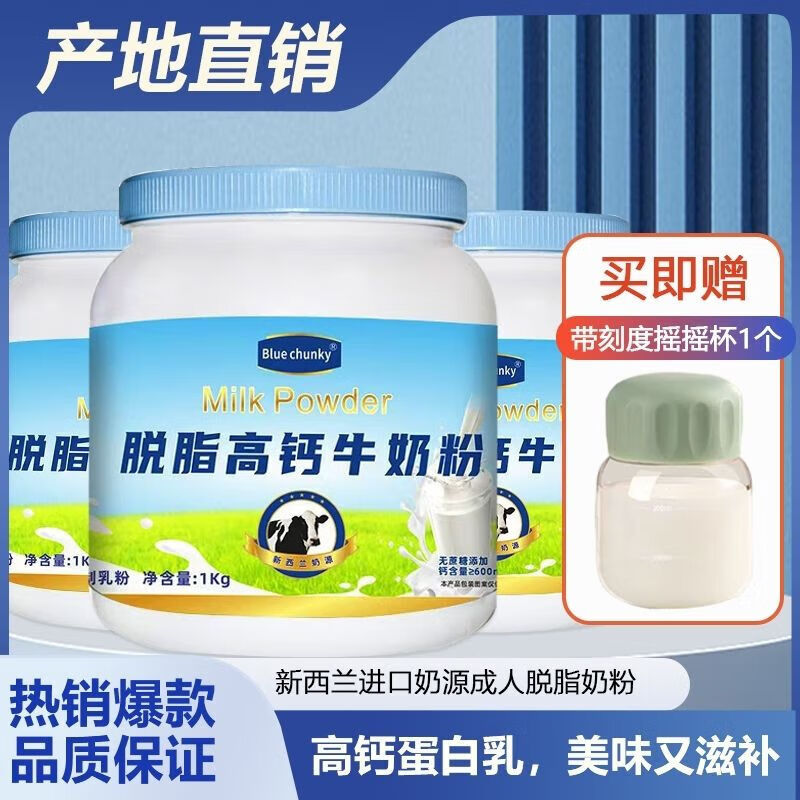 BLUE CHUNKY蓝罐新西兰进口奶源高蛋白高钙 胖子奶粉儿童学生中老年0蔗糖 【热销推荐】蓝罐脱脂奶粉1kg