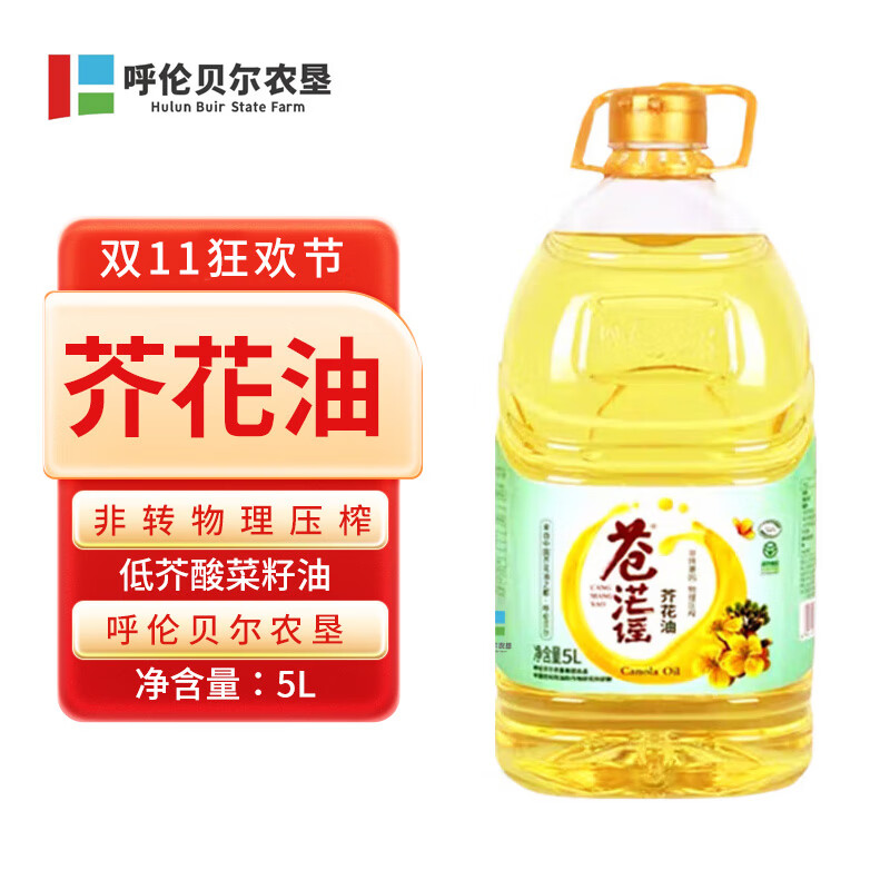 苍茫谣(CangmangYao)芥花油非转基因一级低芥酸菜籽油 5L食用油国企出品