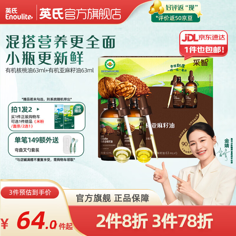 英氏采智有机核桃牛油果亚麻籽油儿童热炒凉拌食用油组合油 【黄金组合】核桃油+亚麻籽油