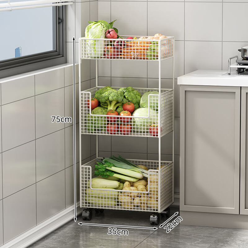 蔬菜篮子置物架厨房蔬菜家用放菜篮子可移动小推车多层水 白色三层【带轮】