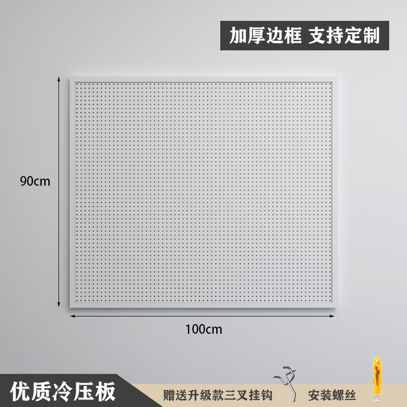 胖东来同款挂板墙面洞洞板铁艺不锈钢冲孔挂钩置物架电动工具定制 【带边框 加厚款】100×90cm-本