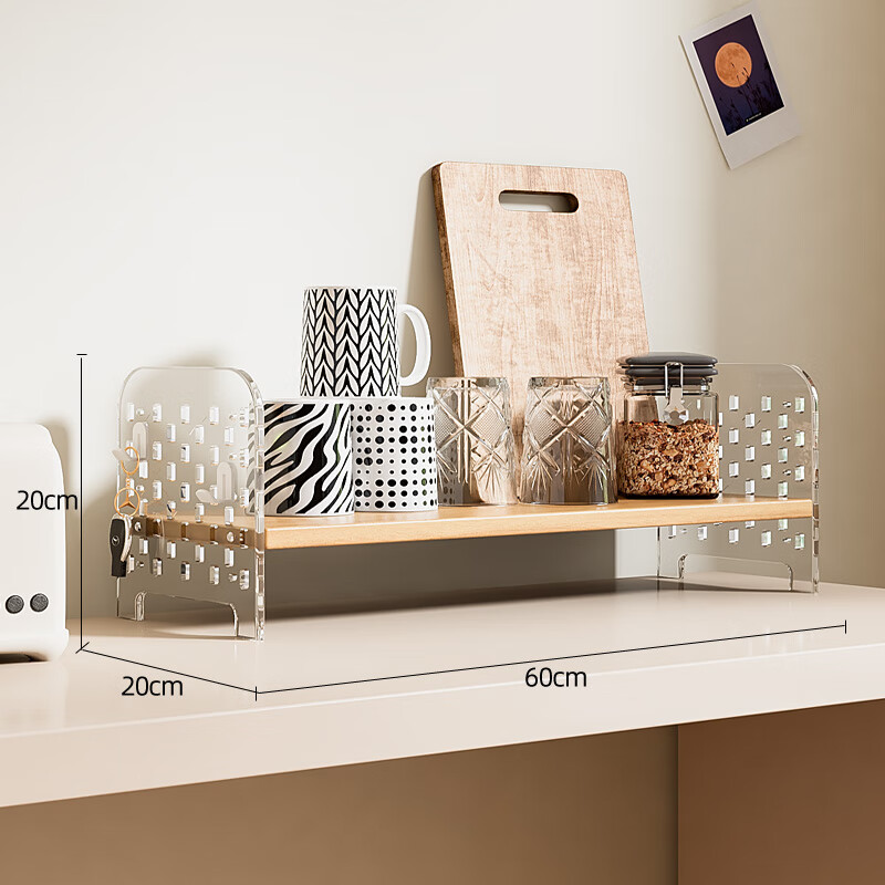 胖东来同款书架桌上多层桌面置物架亚克力洞洞板办公桌收纳架工位 【1层】原木色+亚克力洞洞板60*2