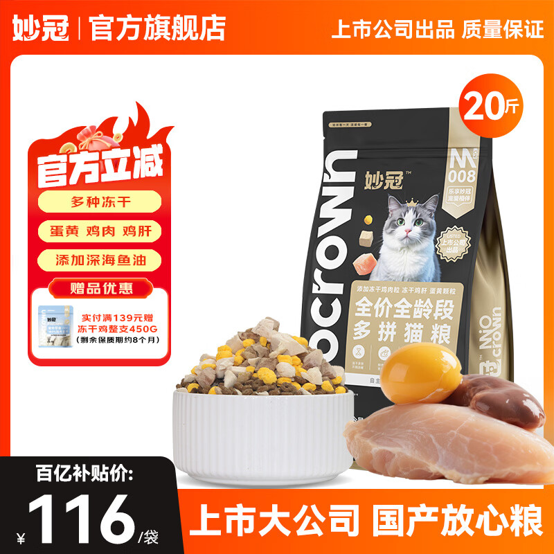妙冠全价冻干猫粮多拼猫粮布偶美短成幼猫通用猫咪主粮 (蛋黄鸡肉鸡肝)冻干猫粮10kg