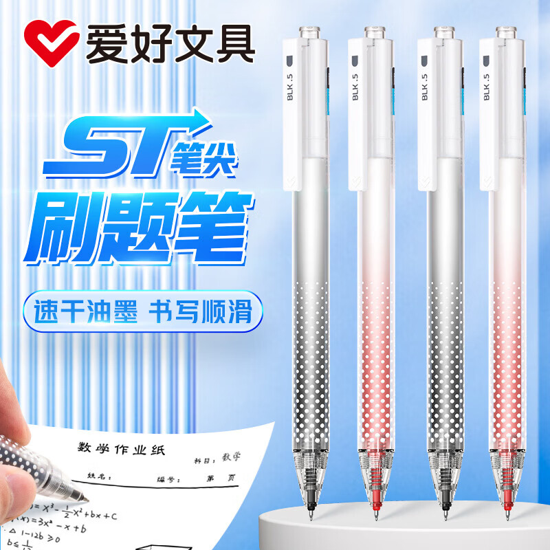 爱好(AIHAO)按动中性笔0.5mm速干水笔黑色考试专用刷题笔办公签字笔黑笔 GP2661 【黑色8支+红色2支】共10支 默认笔芯