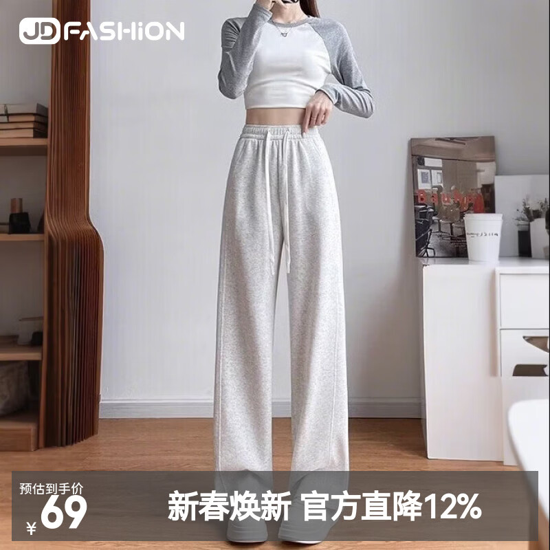 【京东直采】立体弯刀26春新窄版香蕉阔腿裤直筒女卫裤休闲运动裤 白灰色 M 【推荐90-105斤】