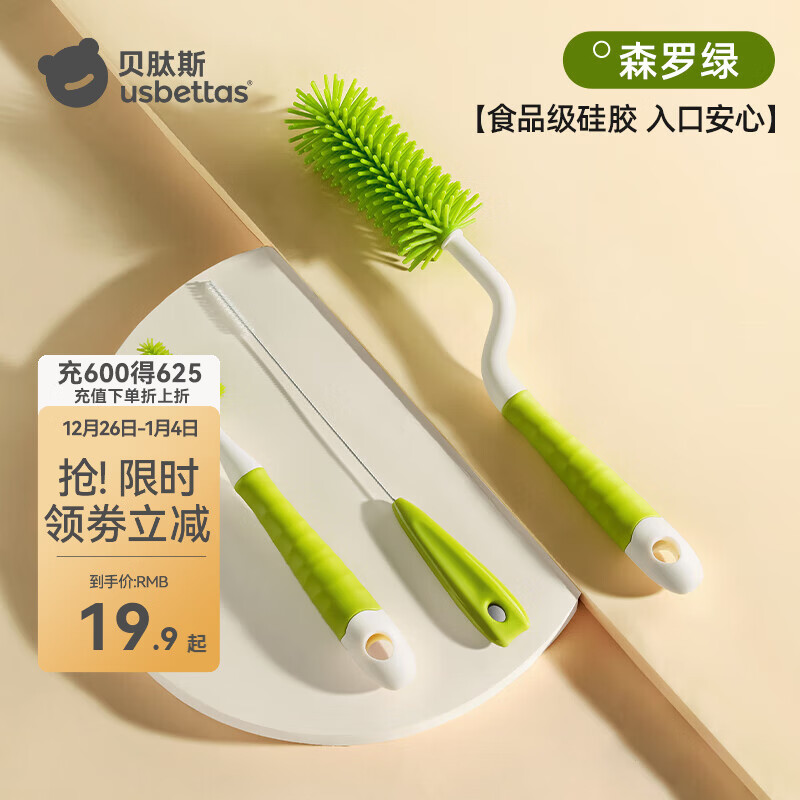 贝肽斯奶瓶刷清洗刷新生婴儿专用硅胶奶瓶刷清洗奶瓶刷子吸管刷子 【森罗绿】防滑手柄硅胶三件套 旋转柄硅胶奶瓶刷套装