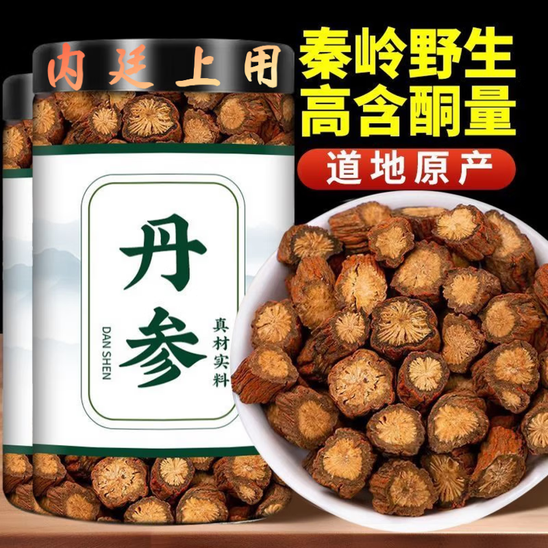 内廷上用秦岭野生特级紫丹参片丹参粉天然无添加泡水泡茶喝中药材 秦岭野生紫丹参片[高含酮量] 1瓶*1瓶 精选野生丹参片500克罐装【店家推荐】