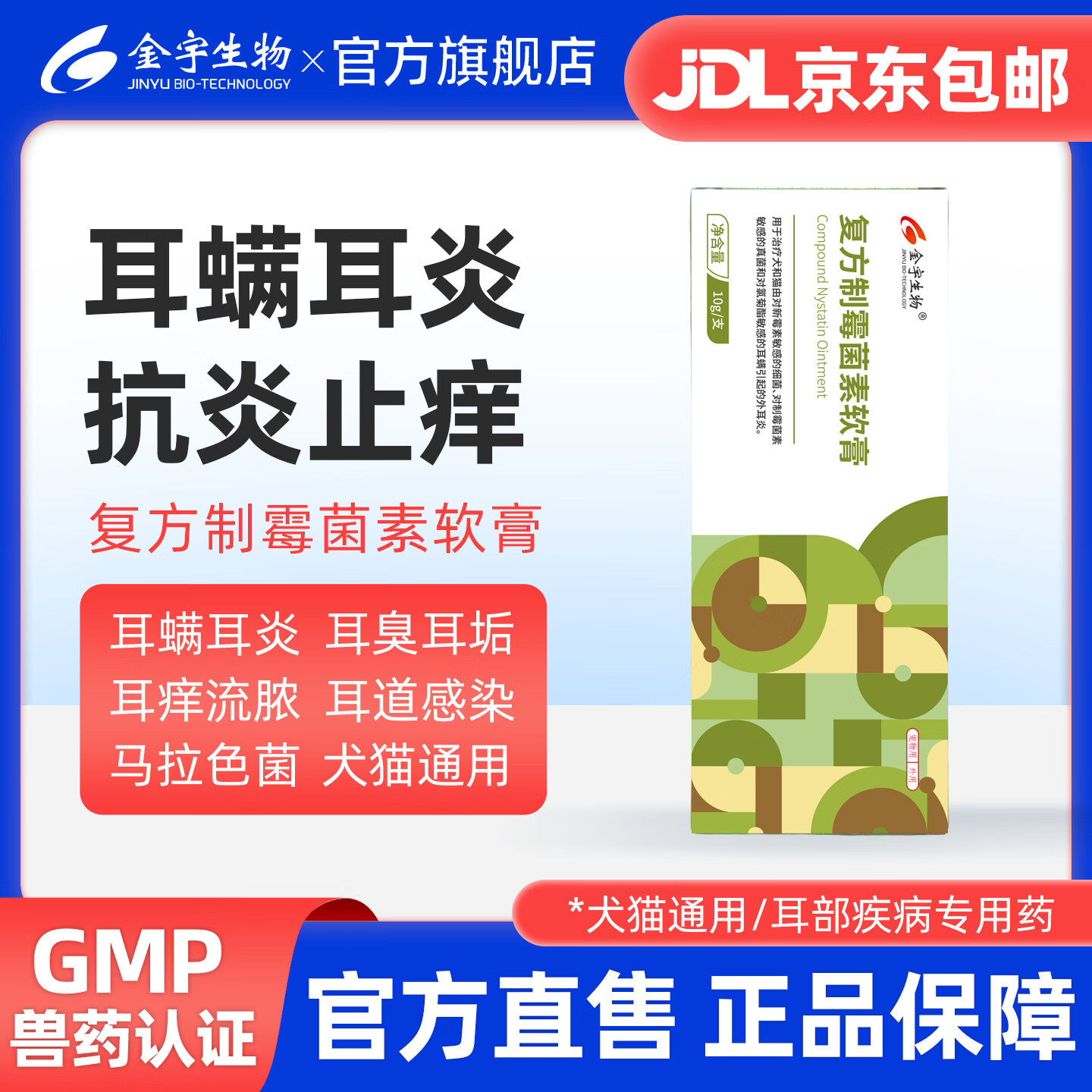 金宇复方制霉菌素软膏猫咪耳炎耳螨软膏耳道马拉感染真菌色菌犬猫通用 复方制霉素耳部软膏*1支 1g*1包