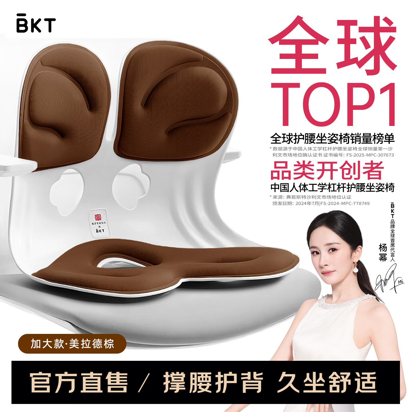 BKT 护腰坐垫椅办公室腰靠学生久坐神器坐姿垫靠腰垫子靠背老人小孩 美拉德色-加大版【150以下适用】