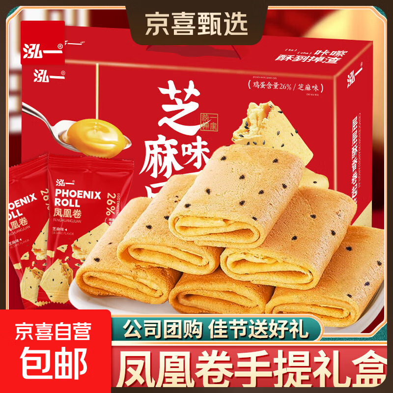 手作凤凰卷芝麻味手工蛋卷学生宿舍早餐饼干上班解馋零食小吃360g 手作凤凰卷芝麻味【900g60包】*1箱