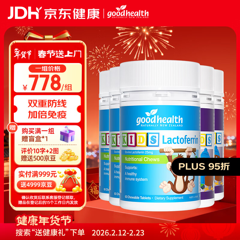 GoodHealth老爸抽检好健康小猴子乳铁蛋白片 儿童增强体质抵抗免疫力60片/瓶 【超实惠】乳铁片 60粒*3瓶 +嚼嚼乐60粒*2瓶