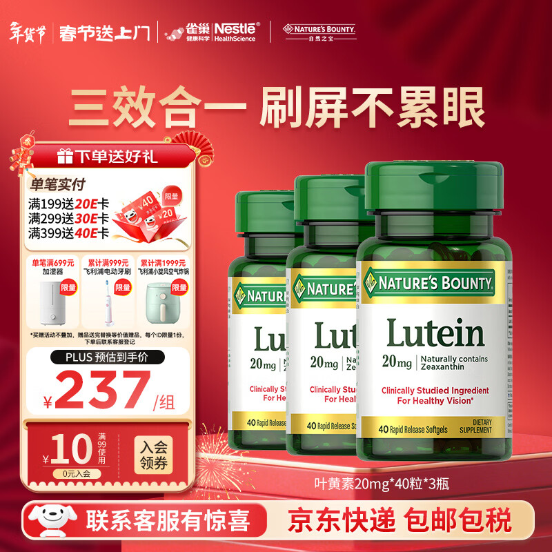 自然之宝叶黄素护眼软胶囊视力20mg*40粒 美国原装进口中老年成人叶黄素 【周期装】40粒*3瓶