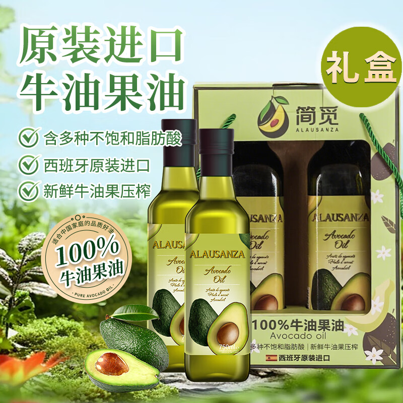 简觅牛油果油礼盒750ML*2西班牙进口 高烟点食用油鳄梨油年货礼盒送人