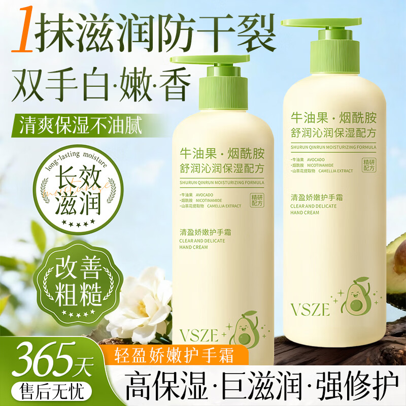 VSZE牛油果凡士林烟酰胺护手霜高保湿滋润肌肤补水防裂改善干燥粗糙 【保湿防裂】牛油果烟酰胺护手霜300g ×2瓶