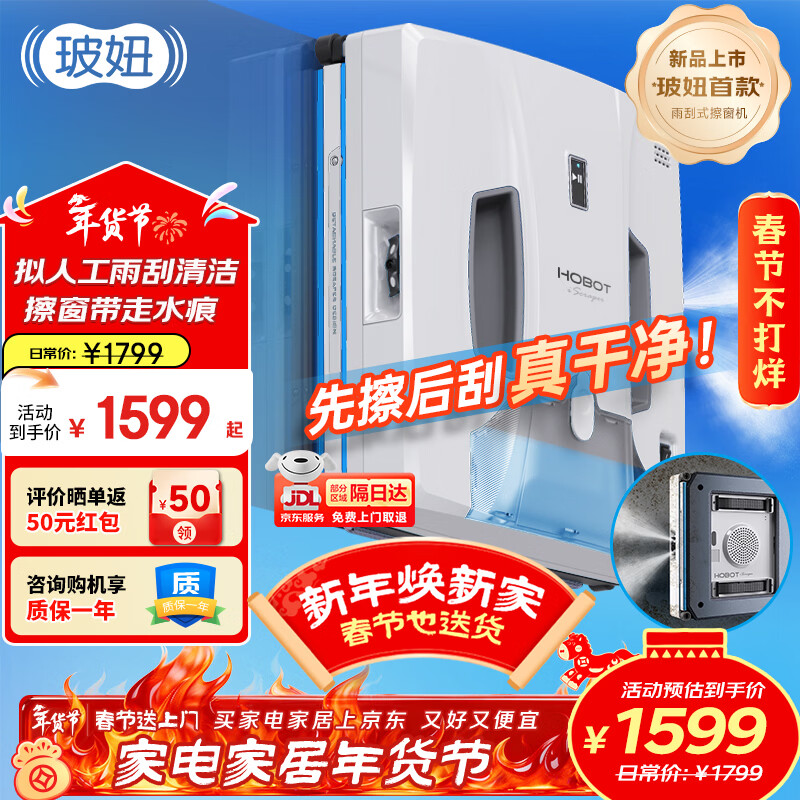 玻妞(HOBOT)全自动刮条擦窗机器人智能气动调节加压喷水擦玻璃机器人雨刮擦窗洁净不卡边擦玻璃神器 玻妞SP10
