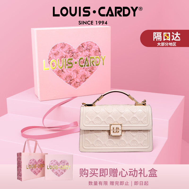 路易.卡迪【情人节礼物】走秀款浮雕手提包礼盒装 米杏色 情人节礼物