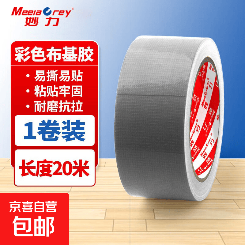 妙力MEEIAOREY布基胶带 彩色高粘防水耐磨抗拉扯 场地布置分区定位装修用 银灰色 宽30mm*长20米【1卷装】
