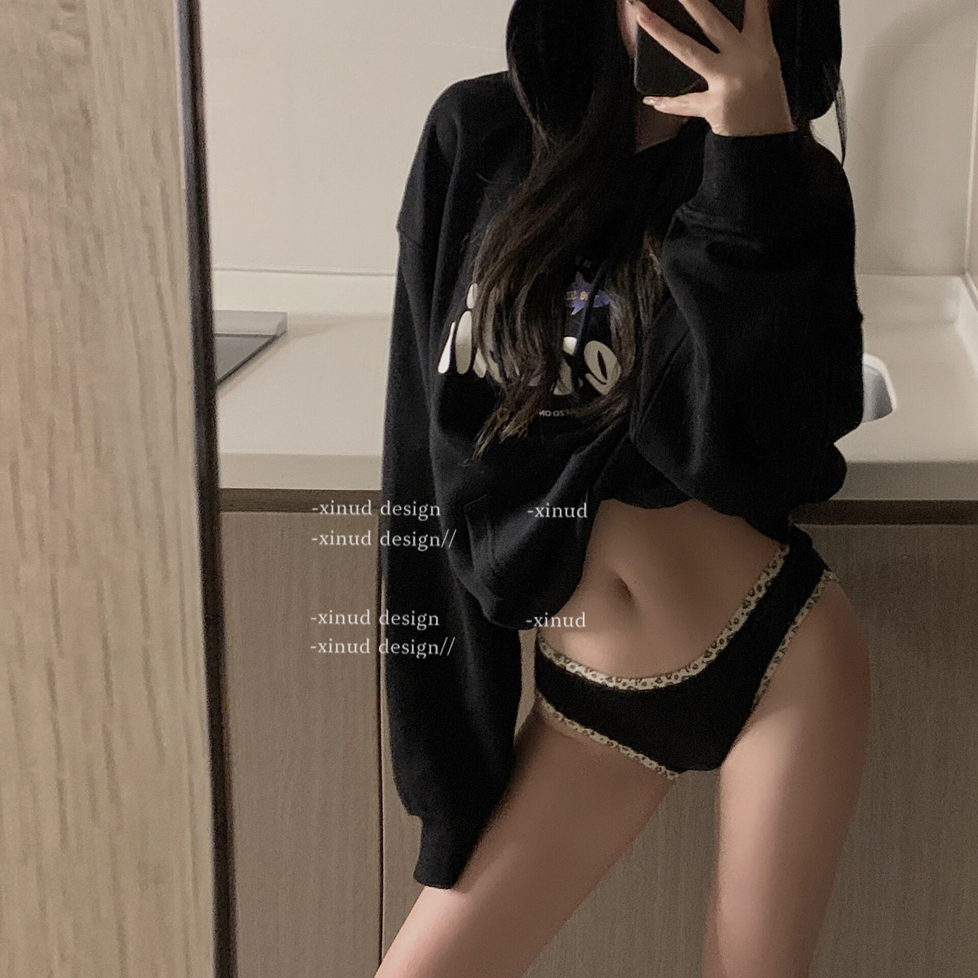 【厂家直发】日系低腰运动型舒适简约新款内裤女裆豹纹边性感少女 黑色 L 【80-125】斤