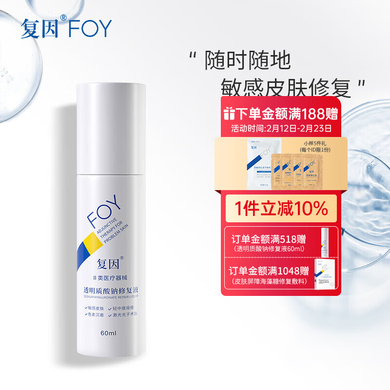 复因FOY透明质酸钠修复液敏感肌轻中度痤疮激光光子治疗术后愈后皮肤 透明质酸钠修复液60ml【京东仓配送】