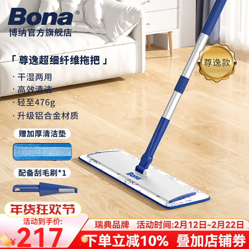 博纳BONA铝合金平板拖把2025新款家用懒人拖布木地板瓷砖墩布家用拖把 [2025新品]尊逸款+赠原装加厚垫