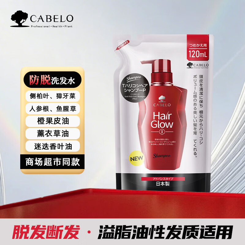 卡蓓诺(CABELO)赋活防脱洗发水 清爽控油强健固发 男士头皮脱发适用【日本进口】 【防脱固发】控油减少脱发 洗发水替换装 120ml*1袋