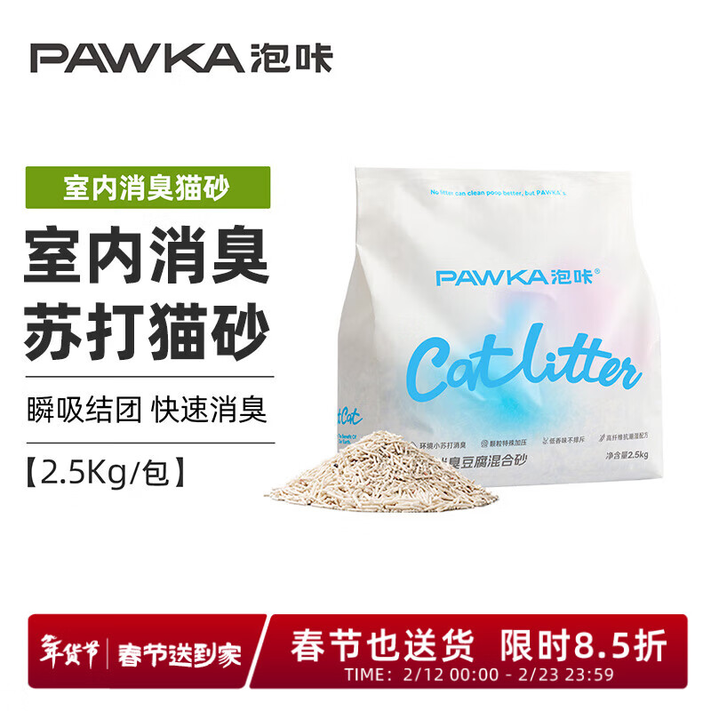 PAWKA泡咔苏打猫砂除臭低尘混合砂膨润土防粘底混合猫砂2.5kg/包 苏打猫砂 30kg /12包/3箱【囤货推荐】60斤
