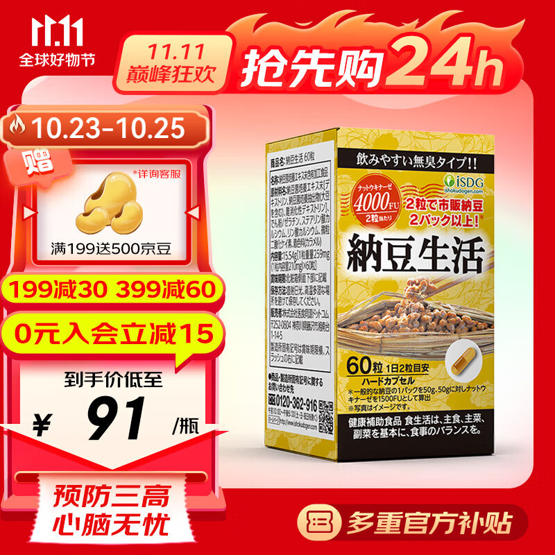 ISDG日本纳豆激酶胶囊 DHA EPA番茄红素溶栓降压疏通心脑血管保健品 4000FU纳豆激酶纳豆生活60粒