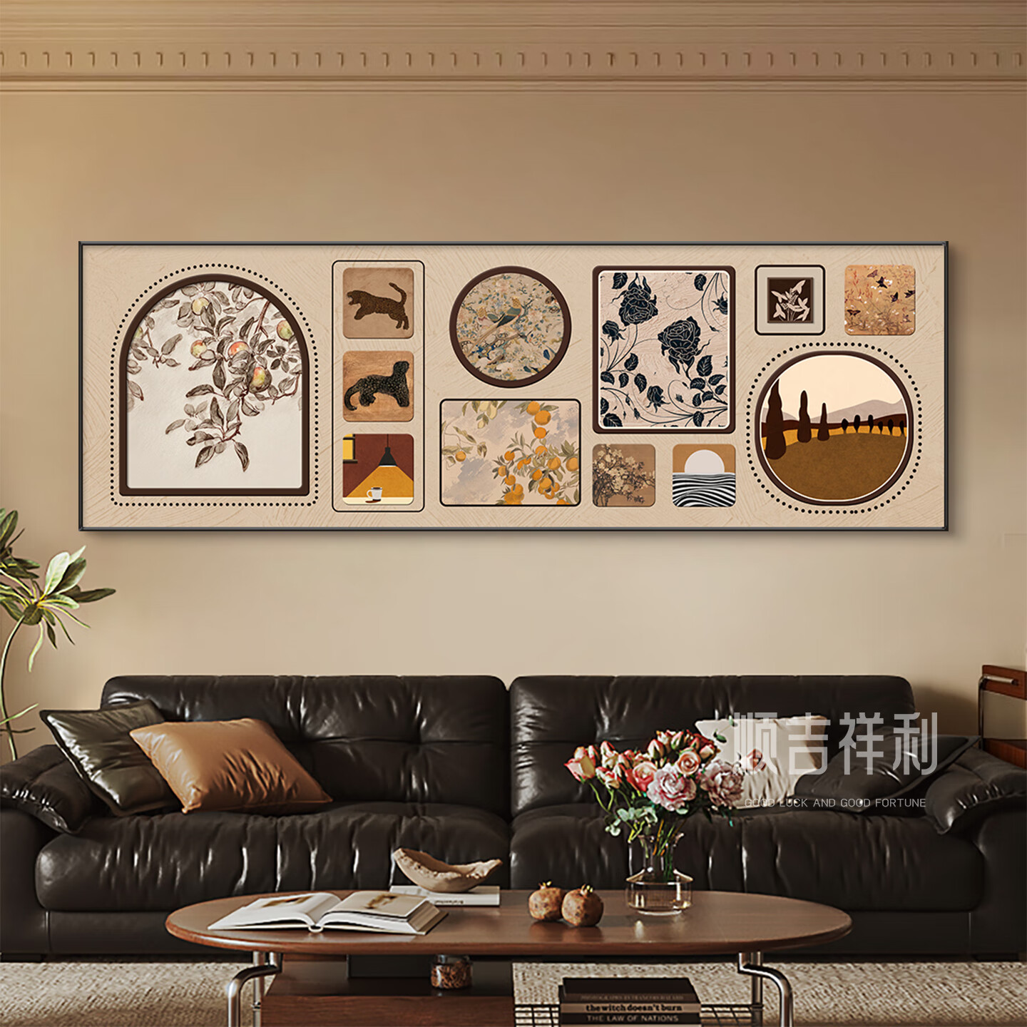 丞仔法式中古风客厅装饰画高级感沙发背景墙挂画复古百联大白墙壁画 G8055雅致古韵D 120*40CM(适合1米6以下沙发) (25%用户选择)高清质感油画布+30MM铝合金边框 轻奢金框