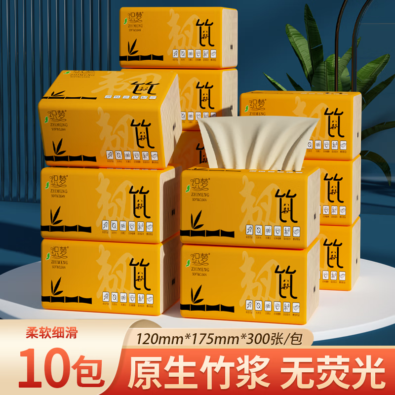 织梦竹浆本色抽纸300张整箱餐巾纸抽纸巾面巾纸 4层 300张*10包