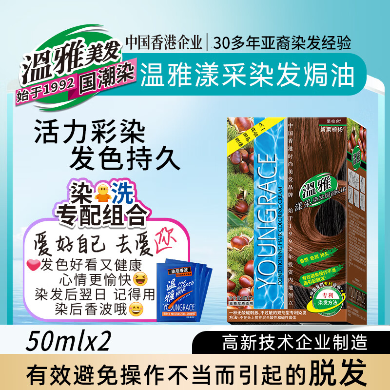 温雅漾采染发剂染发膏植物护发自己染染头焗油膏男士女士彩染流行潮色 栗棕色 50ml*2支 (赠3袋染洗专配组合)