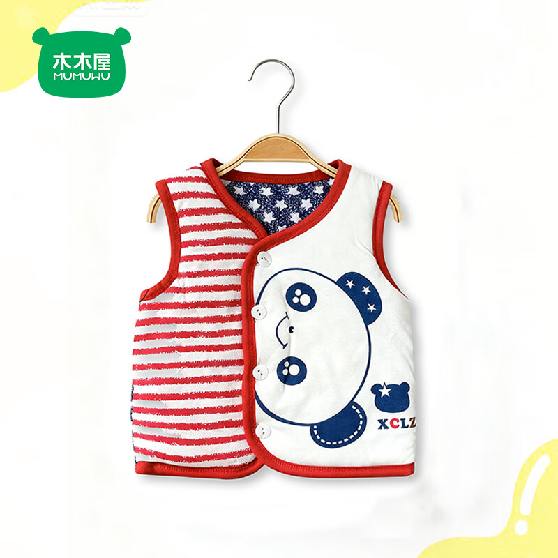 木木屋(mumuwu)【2】儿童马甲春秋冬外穿婴儿加绒加厚背心宝宝夹棉保暖男童 红色马甲【类似花型随机发】 80码数【建议9-12个月】
