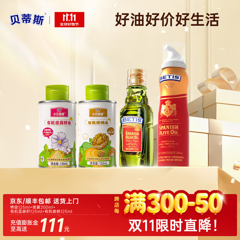 贝蒂斯(BETIS)食用油 特级初榨橄榄油125ml 西班牙原装进口 凉拌烹饪 尝鲜装 组合装 125mL*3瓶 +200ml喷雾