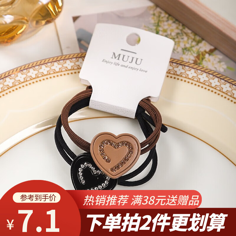 气质小香风水钻发绳感2条卡装发圈高弹力皮筋发饰高马尾头绳 2#爱心(2条卡装)