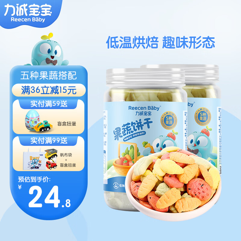 力诚宝宝 果蔬饼干磨牙棒儿童零食趣味营养健康休息零食混合口味 果蔬饼干*2罐 65g*2罐 【12.28到期】