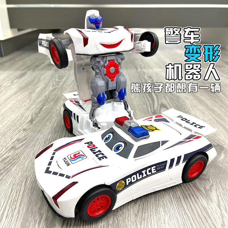 赟娅儿童电动变形赛车玩具警车万向灯光音乐机器人男孩模型六一儿童节 白色警车【灯光+音乐】