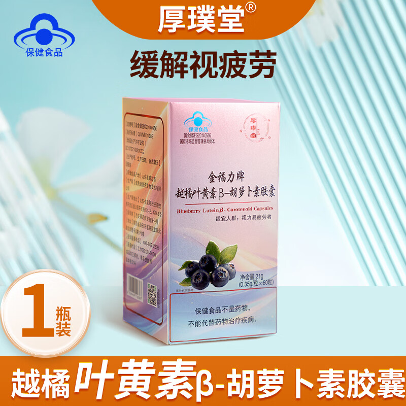 厚璞堂越橘叶黄素β-胡萝卜素胶囊缓解视疲劳正品 1盒装 60粒*1盒