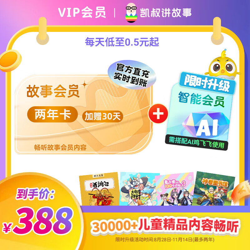 【官方正版】凯叔讲故事会员 西游记讲历史三国演义口袋神探 手机号直充 双年卡