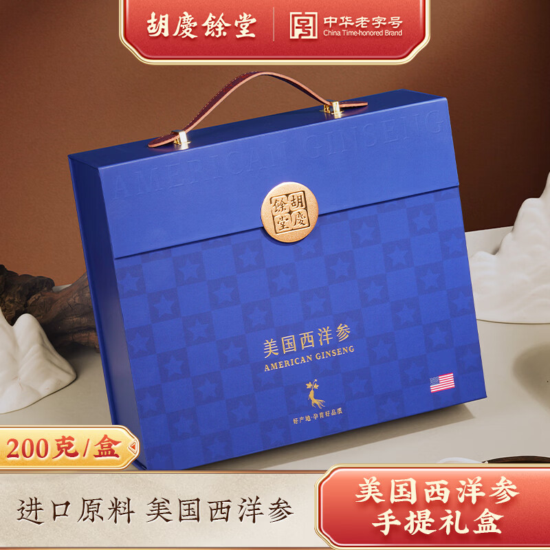 胡庆余堂美国进口西洋参片手提礼盒200g花旗参主根切片新年礼物年货礼品 美国西洋参礼盒 200g*2盒