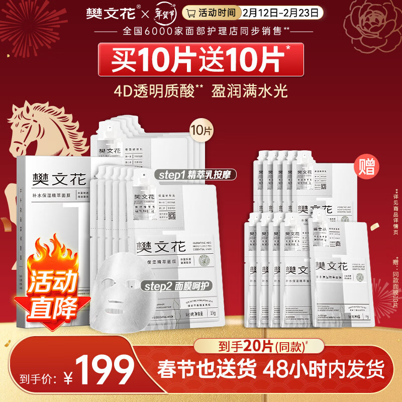 樊文花1号补水保湿精萃面膜舒缓紧致肌肤贴片式保湿面膜护肤情人节礼物 10片装