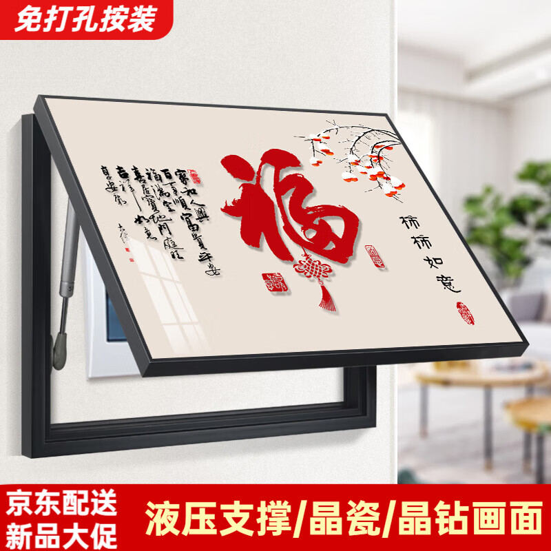 柳莺花燕轻奢电表箱装饰画2026新款客厅配电箱电闸盒遮挡箱电源总开关挂画 F-鸿福满堂 45X35遮挡35X25表箱 晶瓷平面 液压款(瓷砖墙备注)纹理黑框