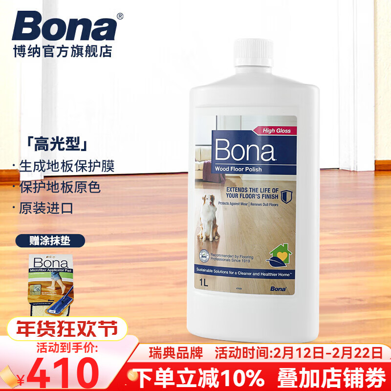 博纳BONA实木地板上光保养剂 原装进口家用护理剂实木复合保养地板蜡 1000ml 1瓶 高光型 1瓶