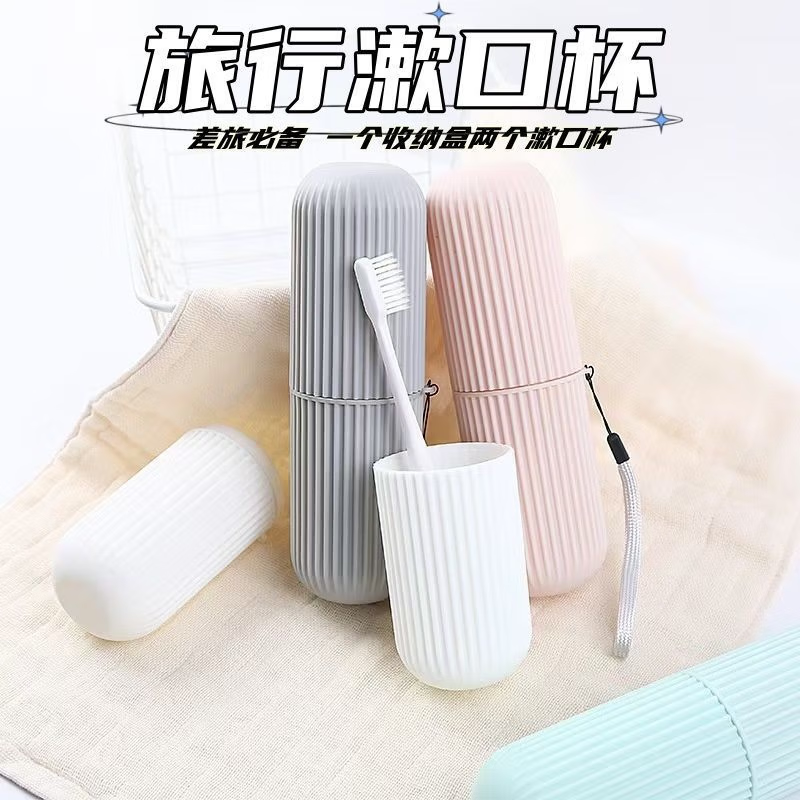 【精选直发】旅行带盖牙刷盒漱口杯便捷出行牙膏收纳洗漱水具配件 2个【随机颜色】
