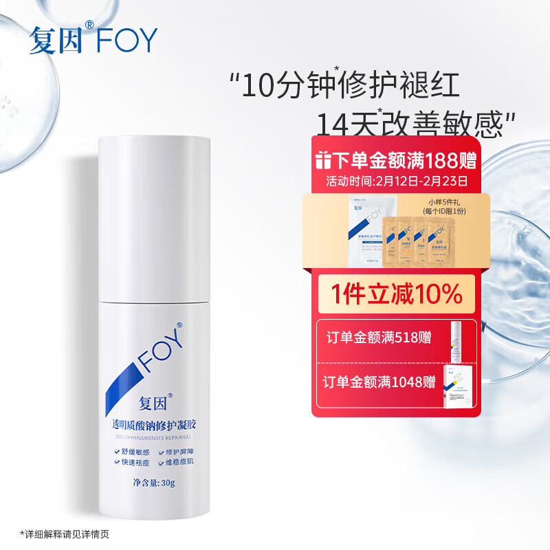 复因 透明质酸钠修护凝胶舒缓敏感屏障修护快速祛痘维稳痘肌 透明质酸钠修护凝胶30g【京东仓配送】