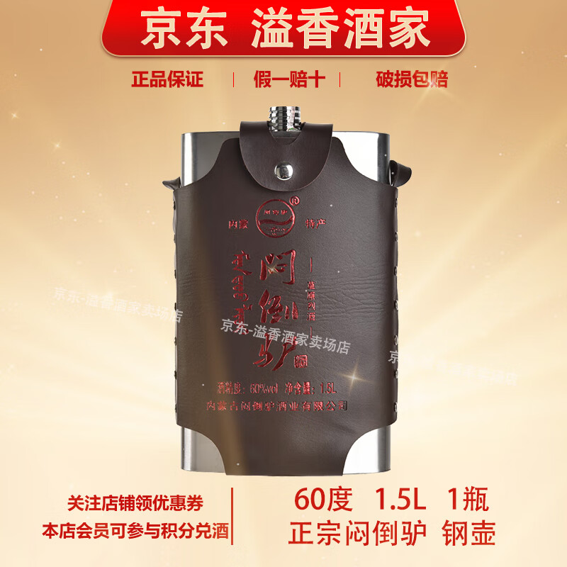 闷倒驴【关注店铺】正宗 草原烈酒 蒙古特产 清香型白酒 新老包装随机发 60度 1.5L 1瓶 闷倒驴钢壶