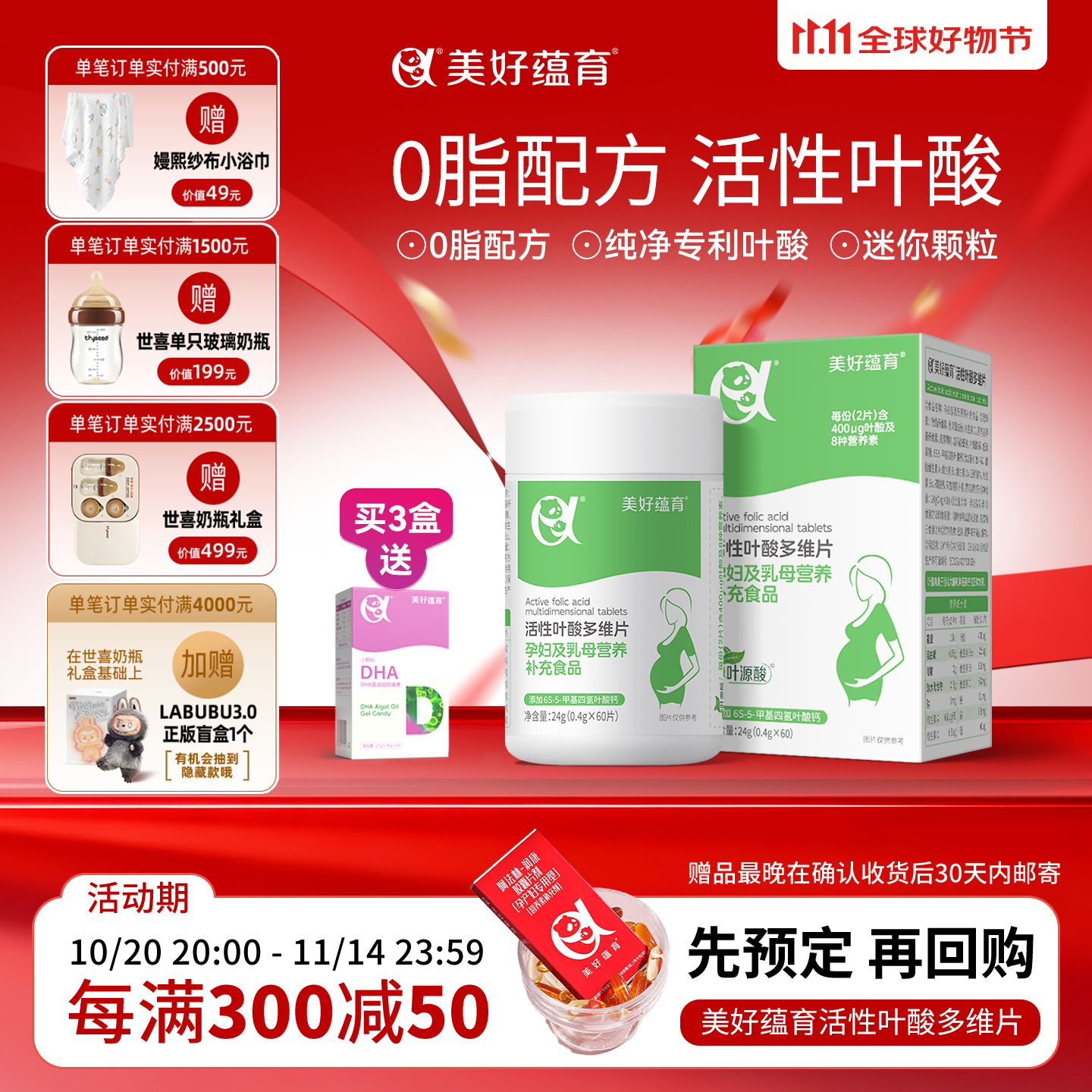 美好蕴育润康活性叶酸孕妇孕期复合维生素备孕怀孕营养新升级0脂小粒60片 1盒【小颗粒30天量】