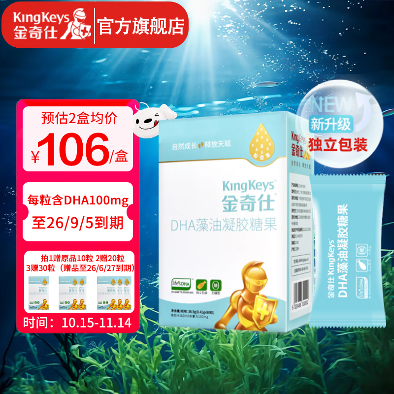 金奇仕帝斯曼藻油DHA90粒【独立包装】纯度高配方干净婴童青少年0岁以上 1盒90粒【纯藻油腥味小】