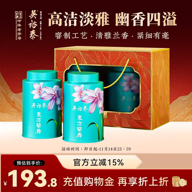 吴裕泰茶叶绿茶花茶东方兰舞 50g*2罐 小茶礼礼盒