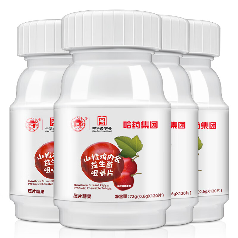 哈药 (世一堂) 山楂鸡内金益生菌压片糖果 酸甜零食山楂鸡内金咀嚼片 4瓶