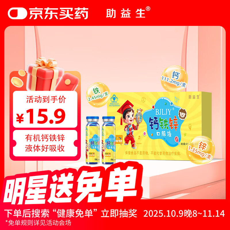 助益生蓝瓶儿童液体钙铁锌口服液 易吸收青少年婴儿钙葡萄糖酸钙锌 10支