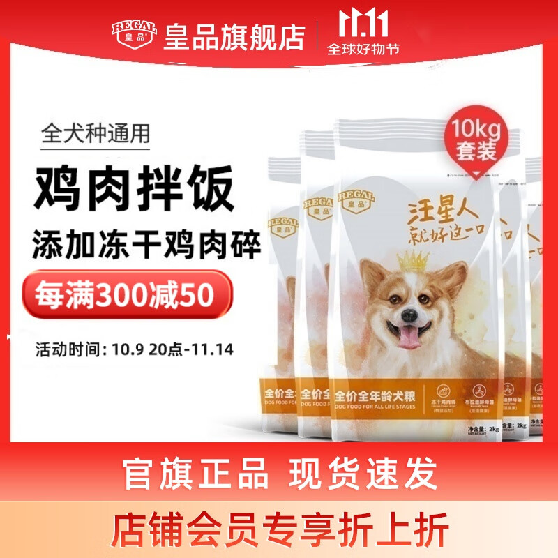 皇品(huAnGpin)狗粮成犬幼犬通用型鸡肉冻干益生菌狗粮泰迪金毛全犬种全价犬粮 10kg套装全年龄犬粮